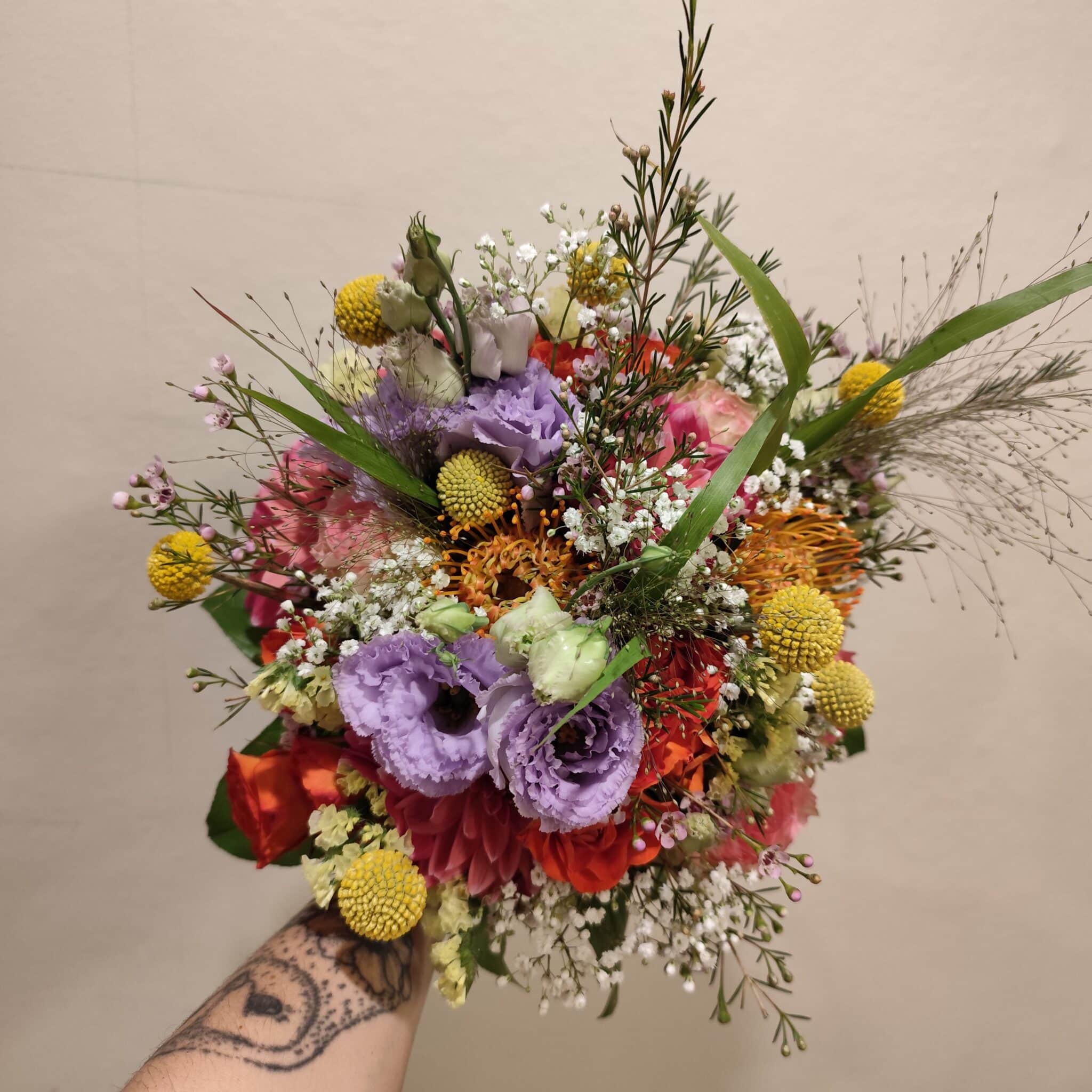 Image non contractuelle, certaines variétés peuvent être remplacées selon les disponibilités. Chaque bouquet est soigneusement réalisé par la fleuriste respectant la taille, la forme et les couleurs choisies.