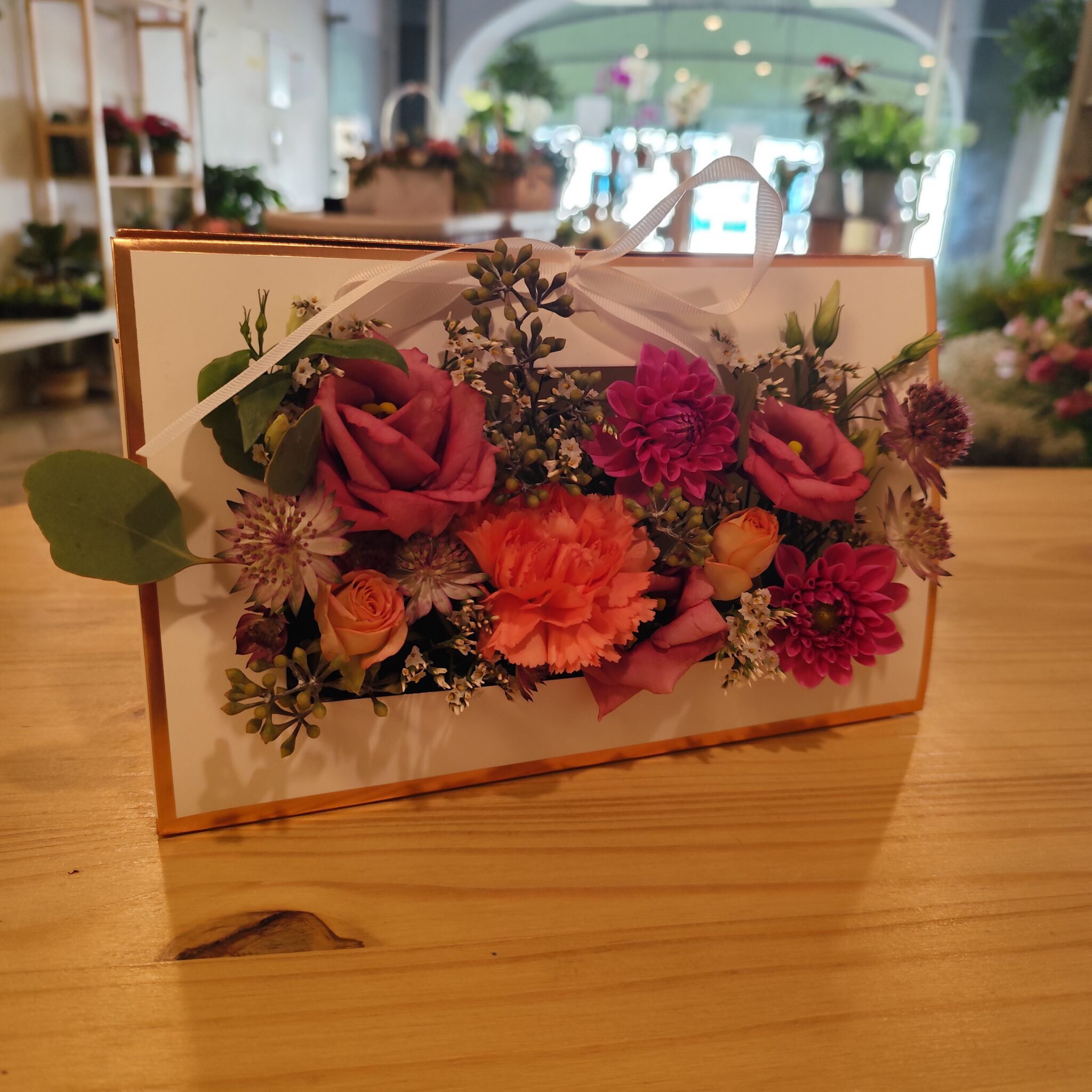 Des fleurs sublimées dans un format chic et élégant. Composé de fleurs de saisons, il ne vous reste plus qu’à choisir la couleur!